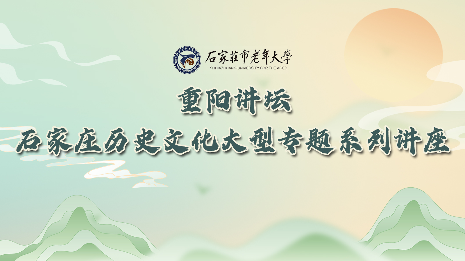 为庆祝中华人民共和国成立75周年,深入学习贯彻党的二十届三中全会精神,弘扬中华优秀传统文化,增强文化自信,中共石家庄市委老干部局、石家庄市老年大学于9月份推出“重阳讲坛--石家庄历史文化大型专题系列讲座”。讲座将邀请省、市一流专家作为主讲嘉宾。