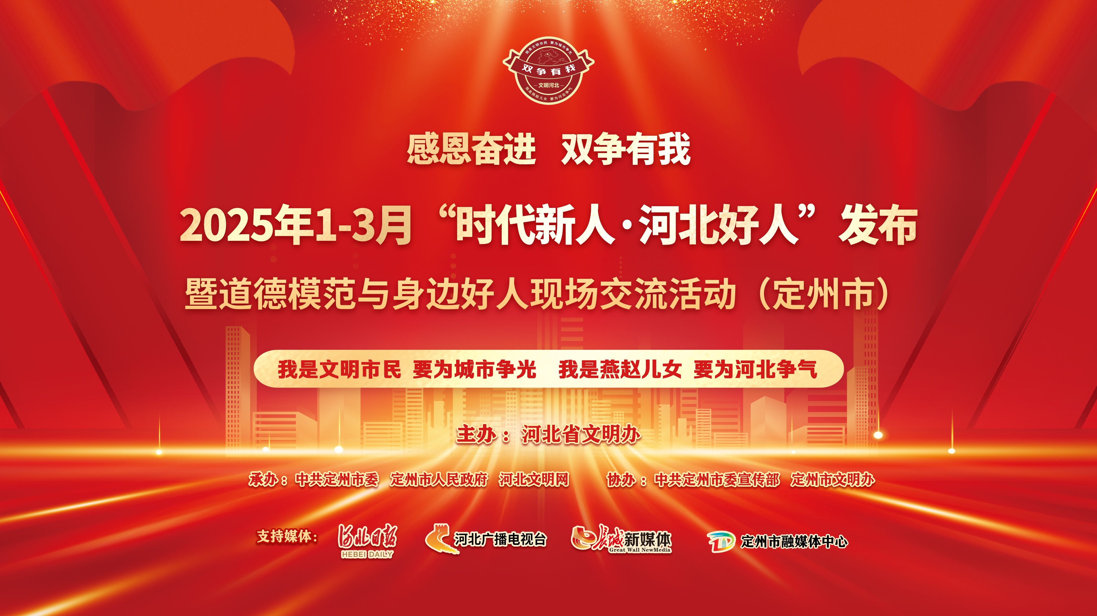 春意盎然,情暖燕赵。4月9日16:00,感恩奋进 双争有我——2025年1-3月“时代新人·河北好人”发布暨道德模范与身边好人现场交流活动将在定州市举行。 这些荣登榜单的“河北好人”,有的在平凡岗位上无私奉献,有的在点滴生活中汇聚暖流,他们是双争活动的践行者、引领者,为社会树立起一个个精神坐标,激励着更多人投身向善的行列,让文明之花在燕赵大地处处盛放。