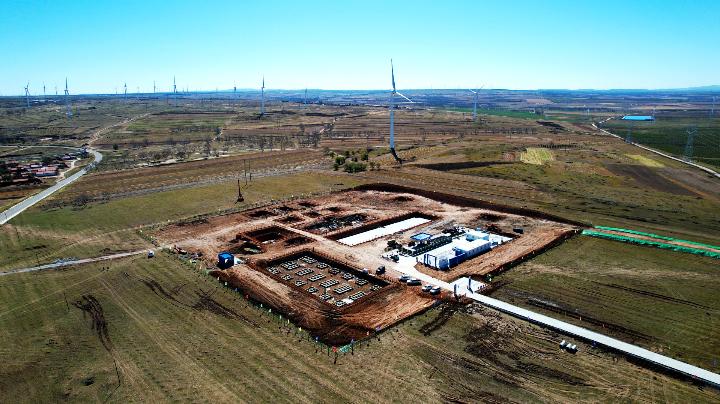 尚义县30万千瓦光储项目升压站建设现场俯瞰。李颢 摄