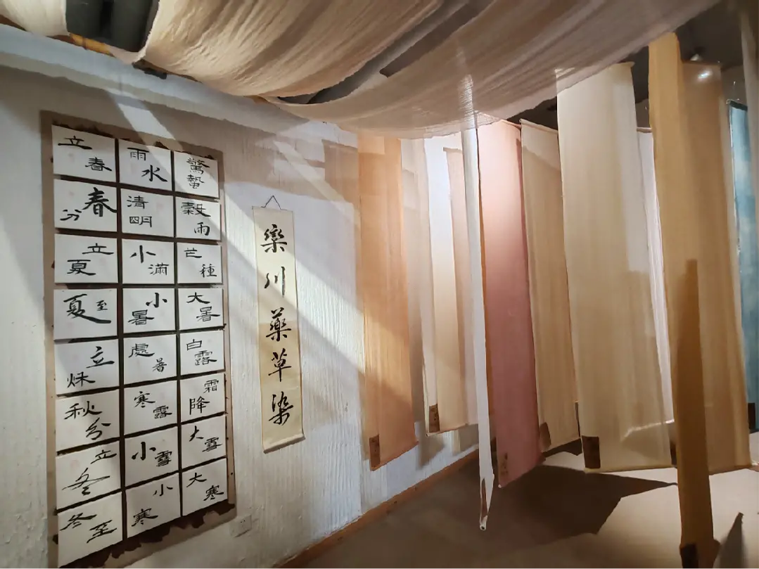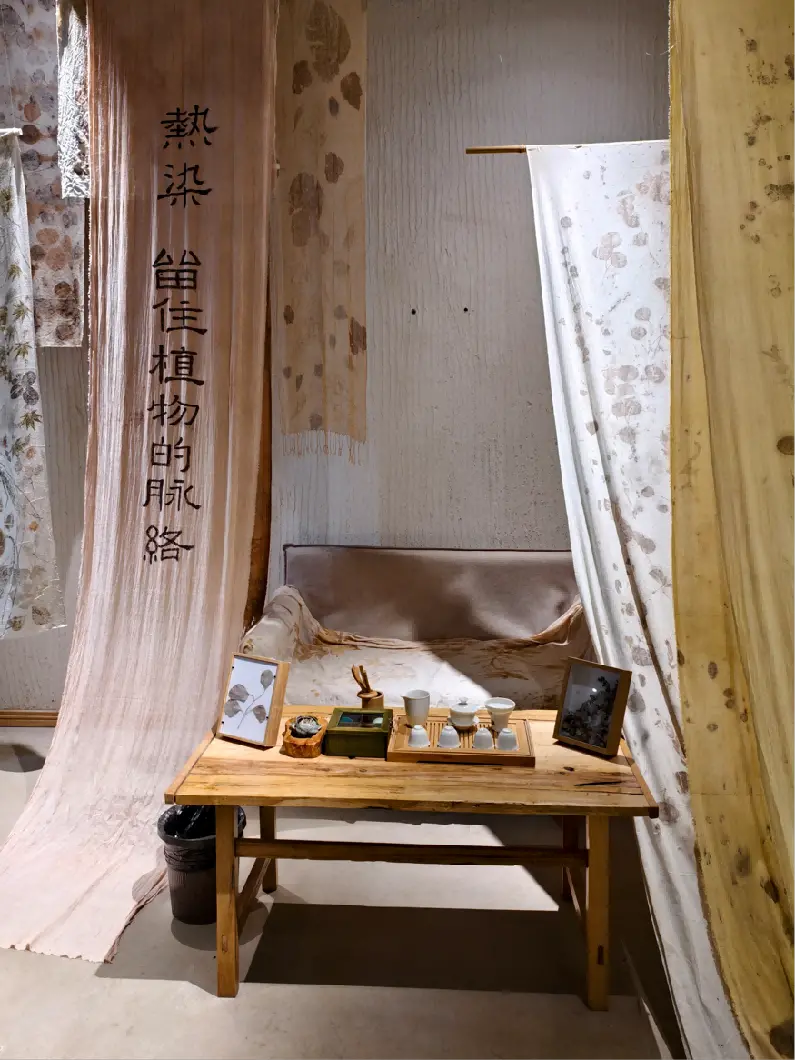 此外,任廷雅还特别介绍了民宿中依据二十四节气设计的染色布。每一块布都采用当季特色草药染色,色彩与图案蕴含着时节的独特韵味。