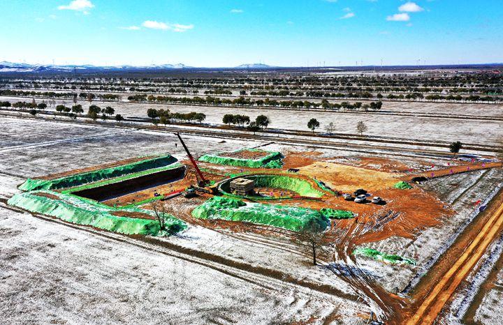 河北经济日报讯(通讯员 王子睿 张红杰)10月18日,张家口市沽源县迎来今冬首场降雪,草原风场银装素裹,气温骤降至零下12摄氏度。张家口高发展公司沽源县5万千瓦风电项目施工现场,积雪覆盖的作业面上,凛冽的寒风,吹着工地的旗杆瑟瑟作响。罐车、挖掘机、装载机、吊车发动机的轰鸣声交织在一起,勾勒出一派繁忙、壮观的施工场面。数十名施工建设人员发扬苦干实干精神,顶严寒冒风雪,挑灯夜战抢工期,争分夺秒赶进度,打响冬季施工攻坚战。