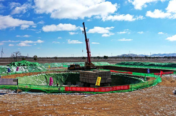 目前,该项目X01、 X06 号风机基础已完成浇筑,升压站综合楼即将封顶,其余 5 台风机基础施工和综合楼的各项工作都在有条不紊推进中。