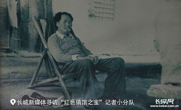 在毛泽东旧居,主席办公室北墙上挂着一张珍贵的照片,照片中央是毛泽东,他悠然地坐在躺椅上,旁边还放着一双崭新的布鞋和批阅过的文件。照片右侧露出一个人的背影,是毛主席女儿李讷的保育员韩桂馨,这张照片是当时城市工作部的秘书童小鹏抓拍到的,而这张照片也记录下了主席在西柏坡艰苦奋斗的动人故事。