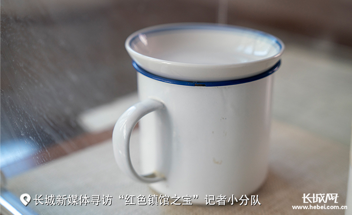 “这只白色搪瓷茶杯,它与普通茶杯相比并没有什么特别,只是没有杯盖。有一次周恩来出门时盖子摔坏了,警卫员多次请示想给他换一只新茶杯,但生活一向艰苦的周恩来同志坚持不换新的,用一粗瓷小碟取而代之,一直使用着。”赵迪说。