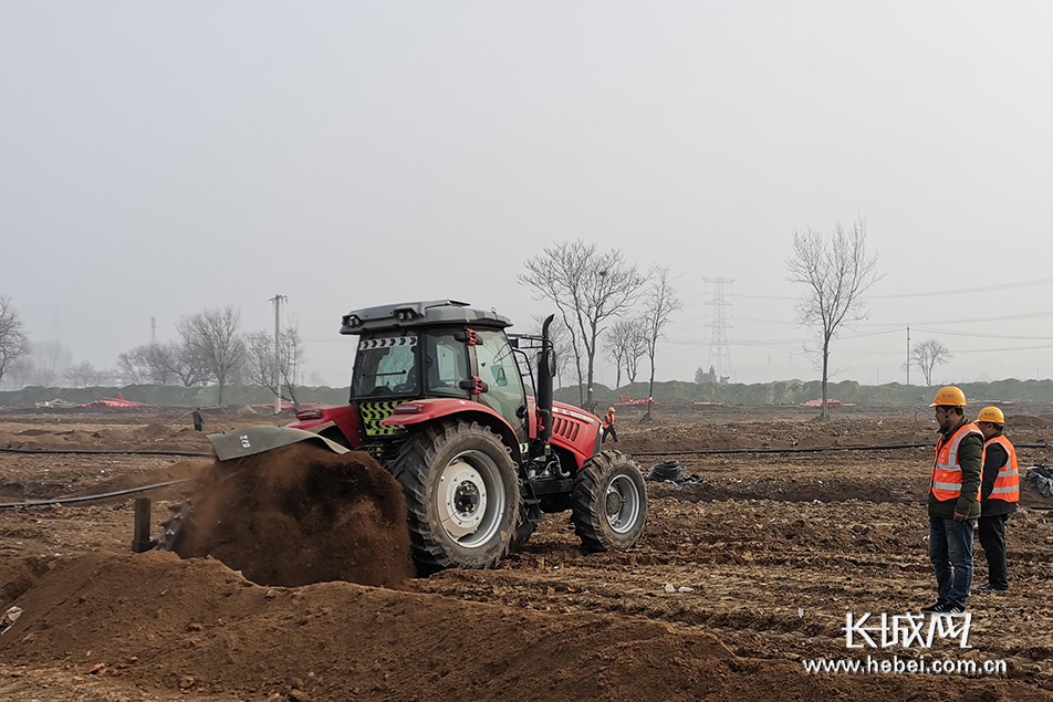 雄安郊野公园辛集林辛集园建设项目施工现场。
