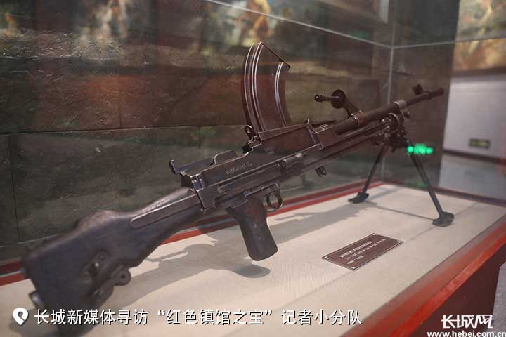 在董存瑞纪念馆的第二展厅,陈列着一把机枪,分外引人注目。据讲解员孙鹏飞介绍,这把枪是董存瑞在隆化旧屯战斗中,从敌人手中夺过来的。