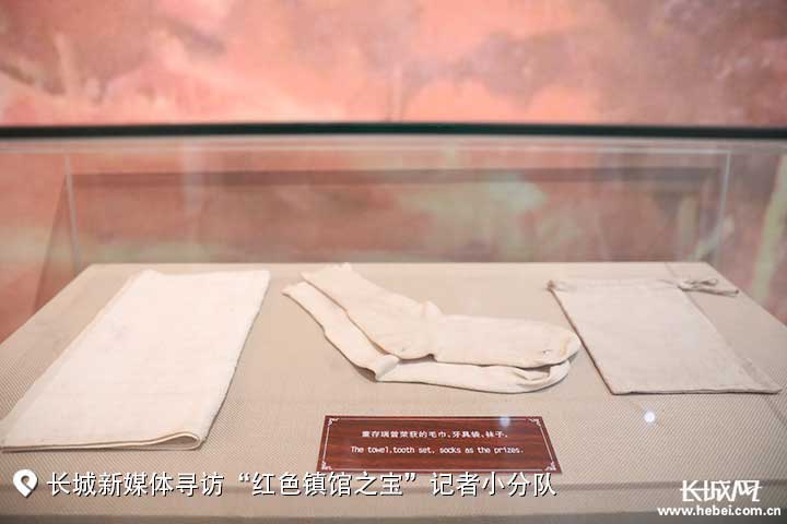 “参军后,部队每到一处,董存瑞都会和当地百姓心连心,在群众生命和财产受到危害时,他都会挺身而出;而且在部队中他积极钻研战术、总结实战经验,成为队伍中的爱民和练兵模范。”跟着讲解员的脚步,记者来到第三展厅,展厅里展列着董存瑞参军时获得的毛巾、袜子等奖品。讲解员孙鹏飞介绍说,董存瑞不仅是战斗英雄,更是爱民护民、团结同志的军中模范。
