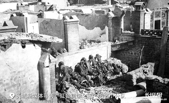 雷烨拍摄的烧杀后的潘家大院,残垣断壁,焦尸累累。潘家峪惨案纪念馆 供图