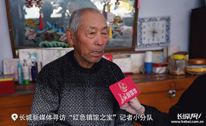 记者正在采访潘家峪惨案幸存者潘春义。长城网记者 冯立华 摄