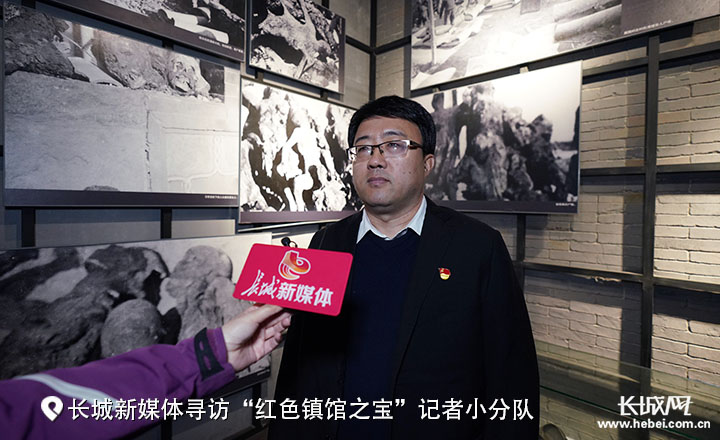 潘家峪惨案纪念馆馆长周学军讲述惨案照片背后的历史。长城网记者 闫航 摄