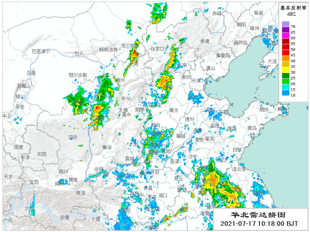 雷达图显示,10点18分石家庄已出现分散性降雨。