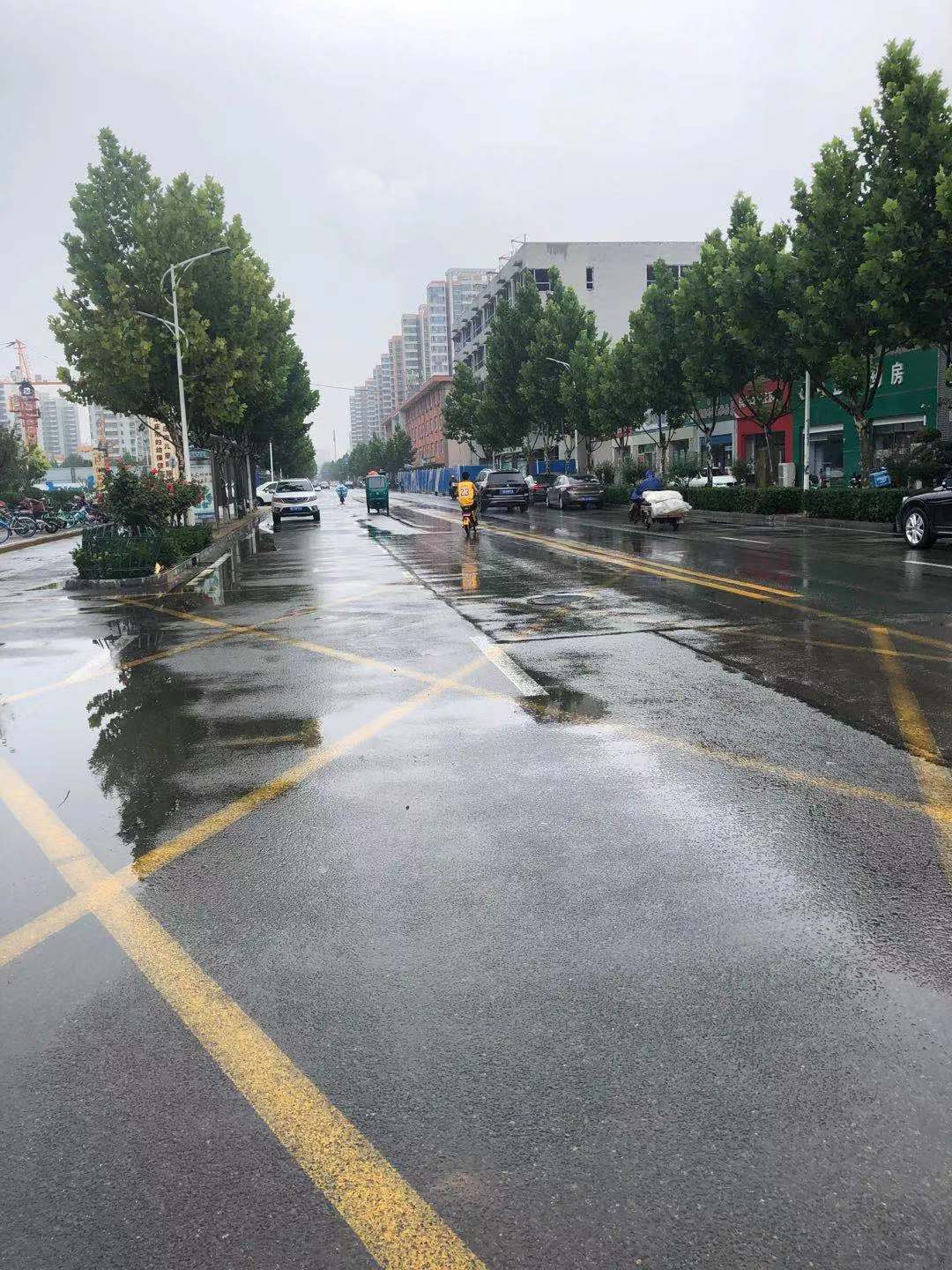友谊南大街刚刚经历了短时降雨,道路通畅。