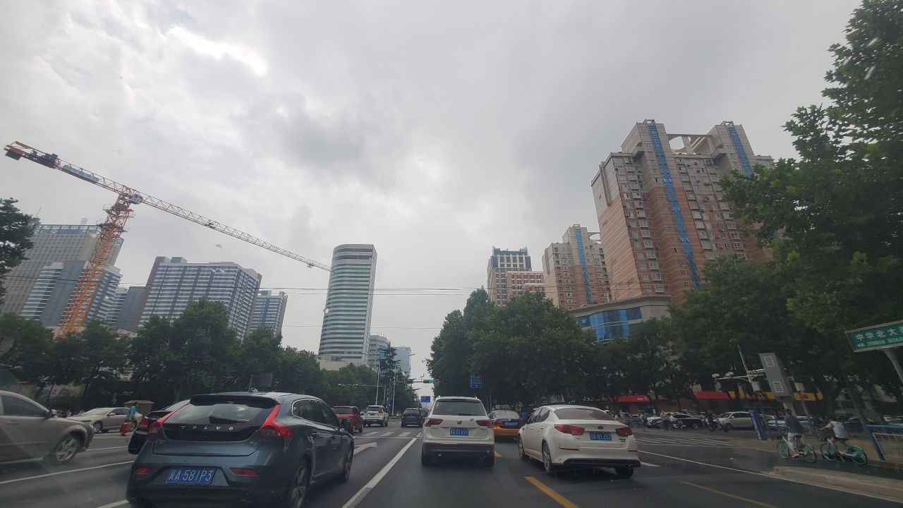中山路西二环下着小雨。
