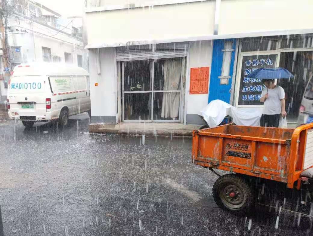 新华区天翼路下起大雨。