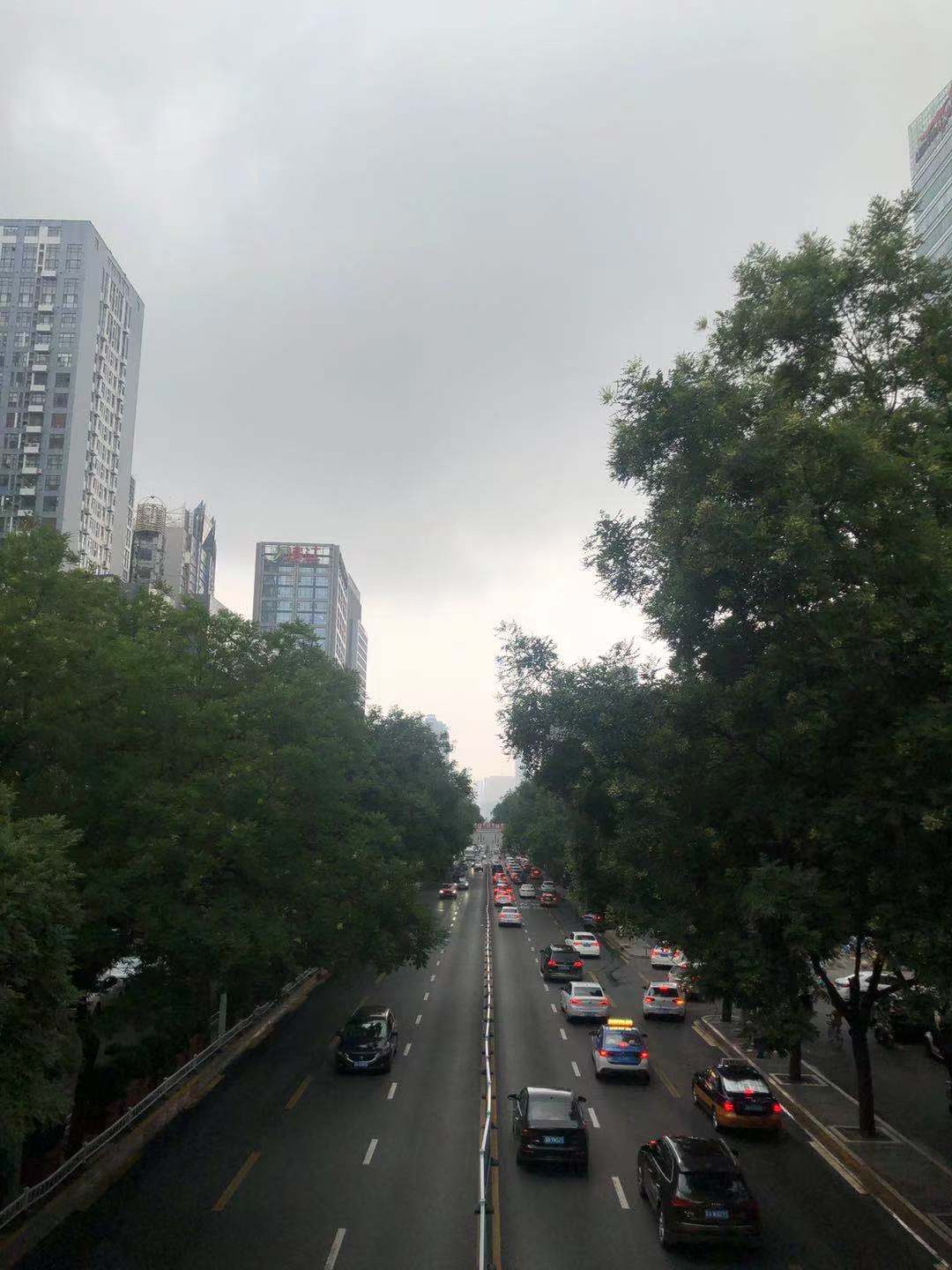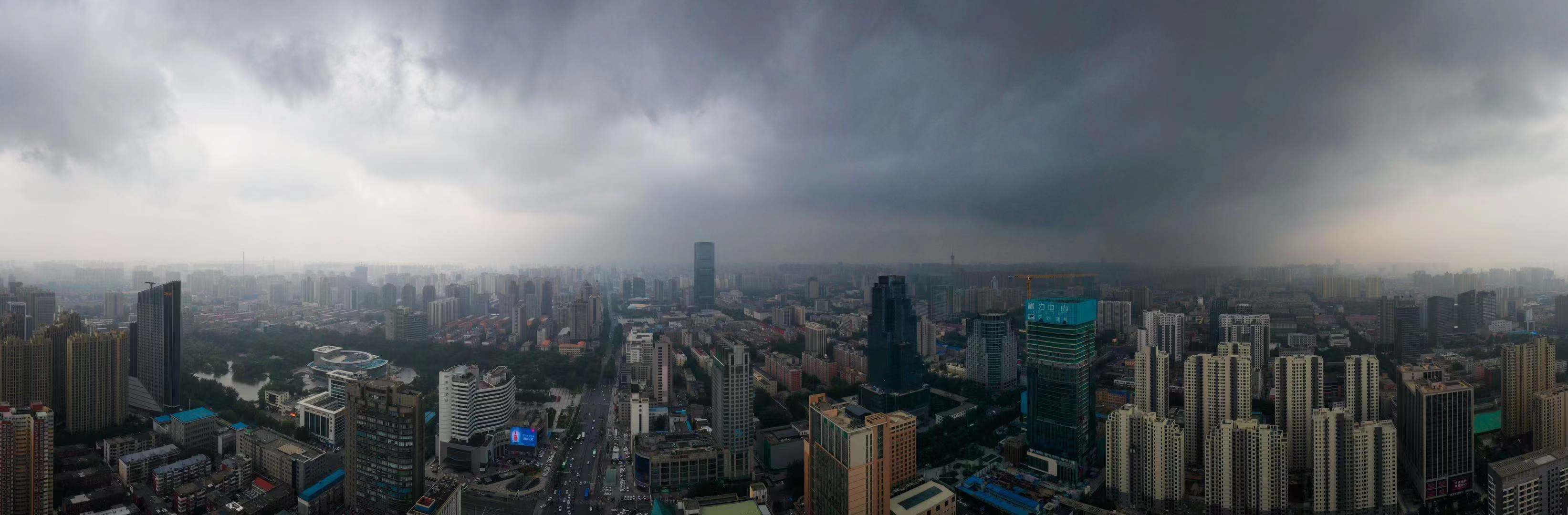 长安区中山路勒泰中心附近阴云密布。(记者 朱昊明 李畅)