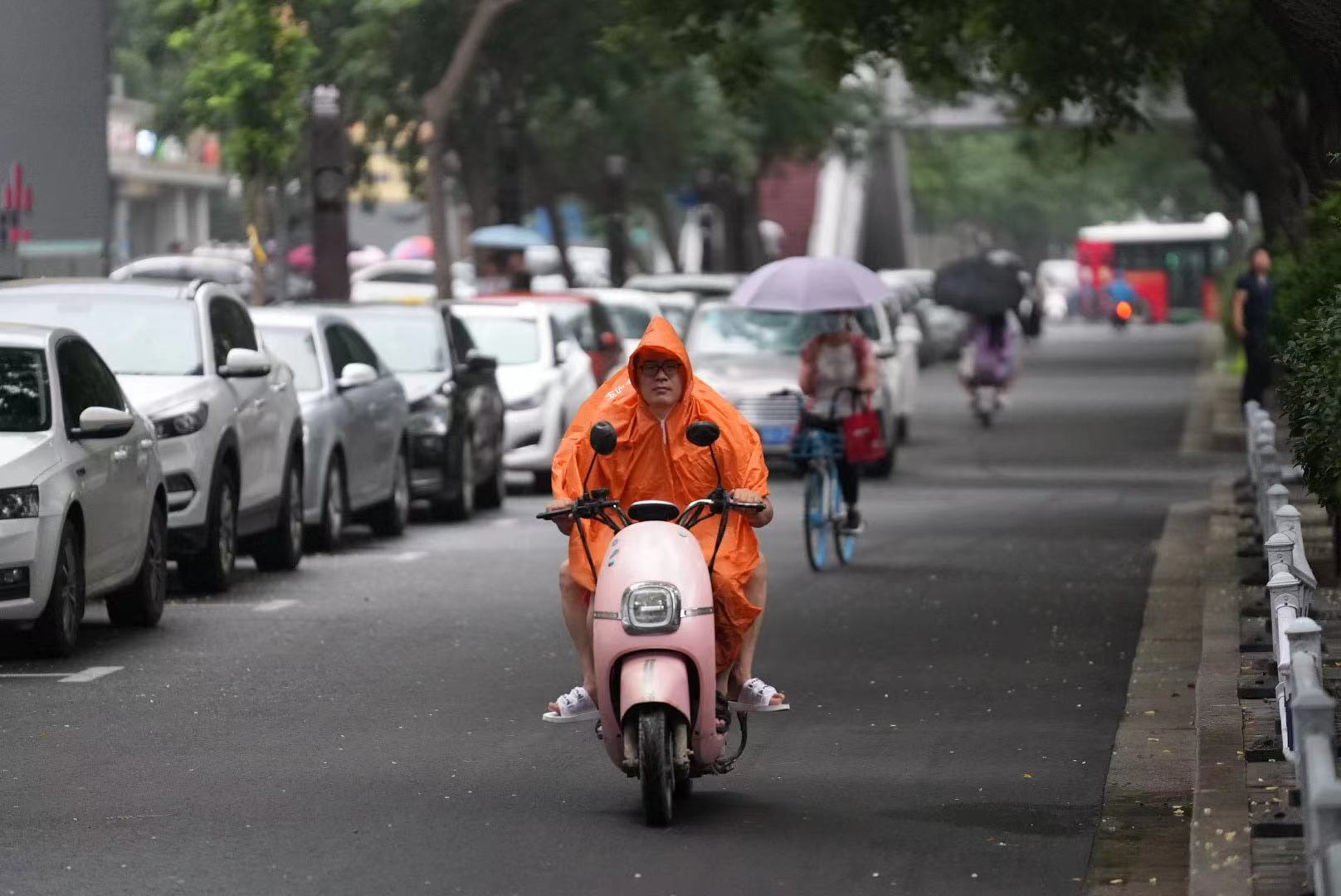 新华区市庄路附近下起雨。(记者 朱昊明)