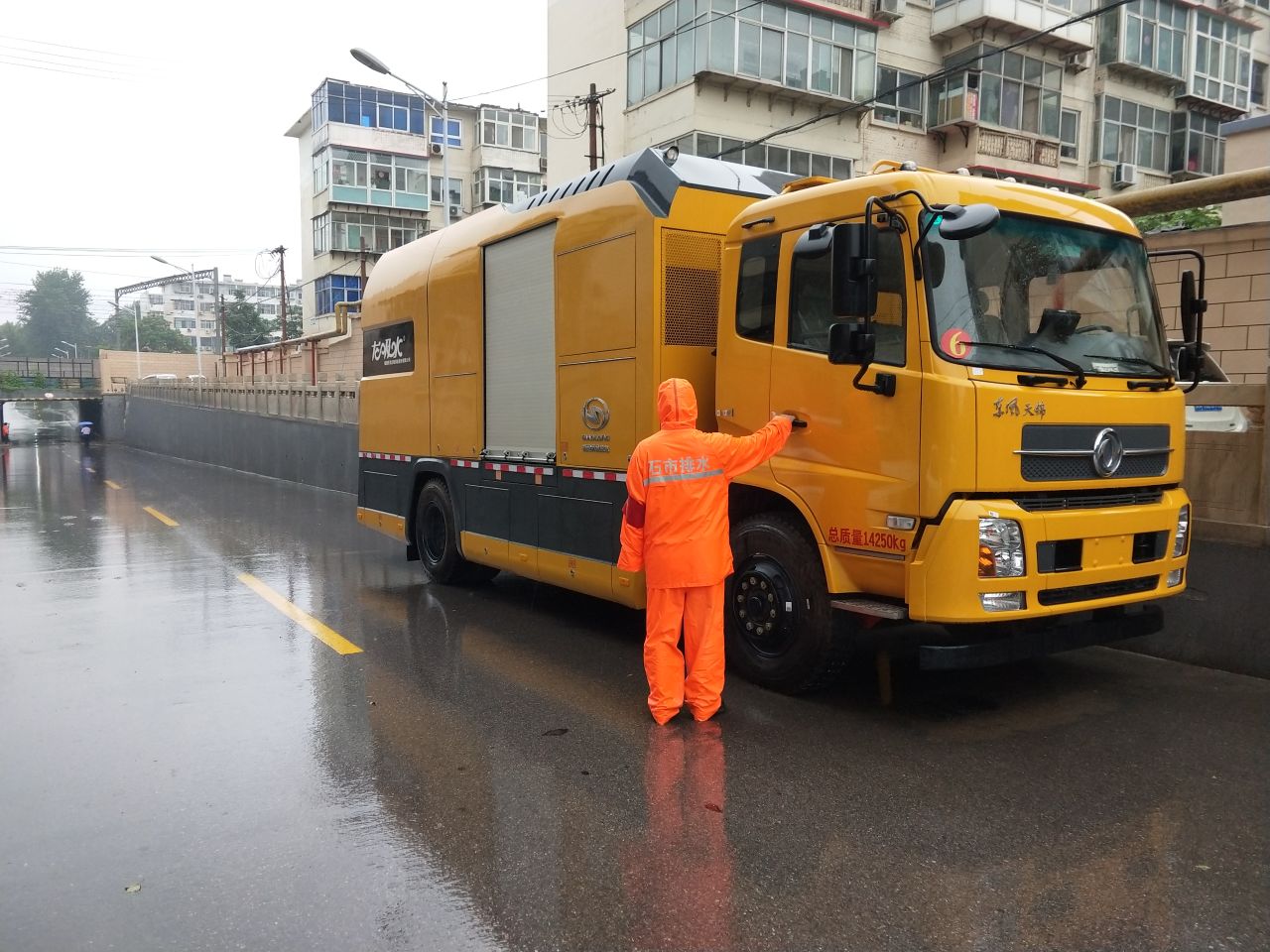 据石家庄市城管局消息,目前中山西路地道桥已断交,工作人员正在全力抽排。