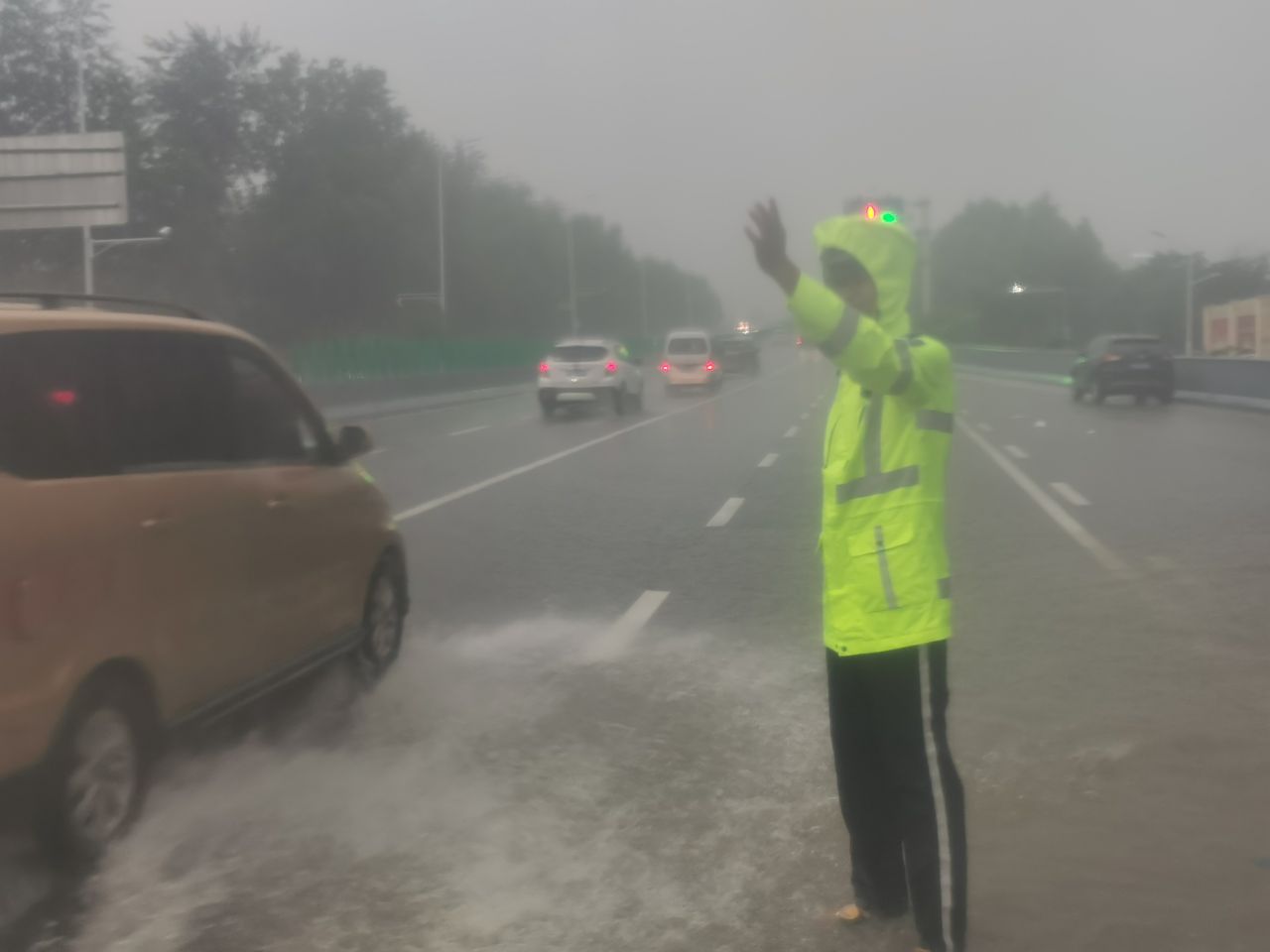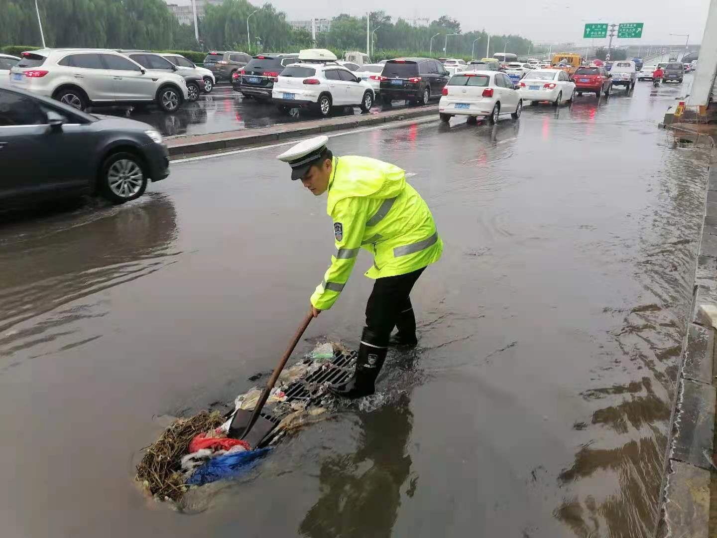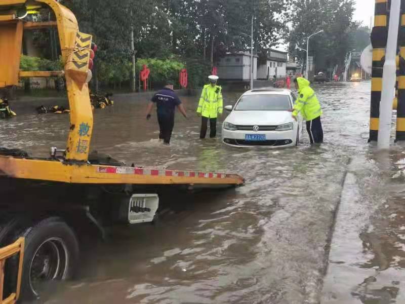 下午,石家庄市区个别路面出现积水,给过往车辆和行人带来不便。石家庄交警加大巡逻防控力度,守护在城市大街小巷道路交通的最前沿,指挥疏导交通,救助被困车辆,疏通下水道口,消除道路交通安全隐患,以“雨中有我、护您平安”的实际行动,保障市民群众的出行安全。