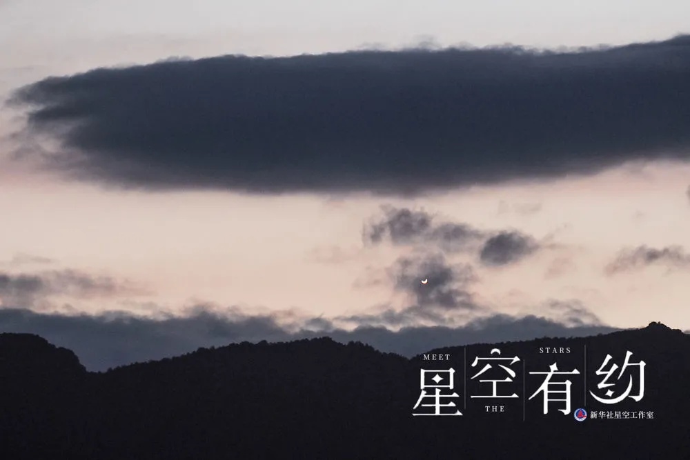 ↑湖南省天文爱好者段鑫2021年7月12日在湖南株洲炎陵拍摄的“金星伴眉月”。(星联CSVA供图)