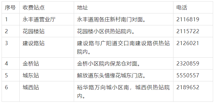 广达供热公司各收费网点地址及电话