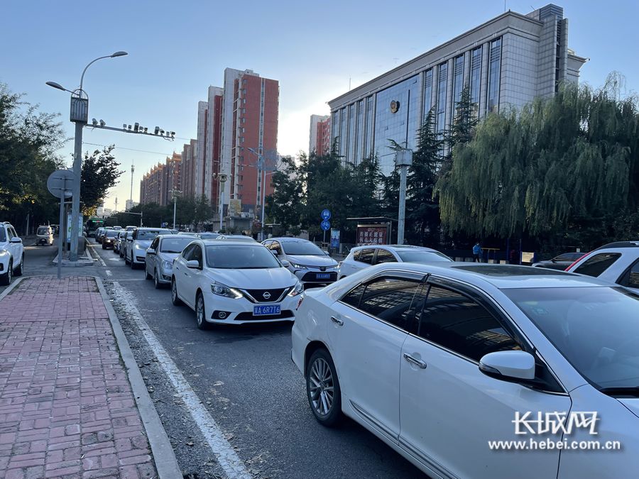 8点40分许,石家庄市裕华区白佛东街与和平东路交口附近,西向东方向有长约500米压车情况。(长城网·冀云客户端记者 张谢雅 周亚彬)